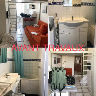 Rénovation complète, remplacement du sol, suppression de la baignoire sabot, restructuration de la cuisine.